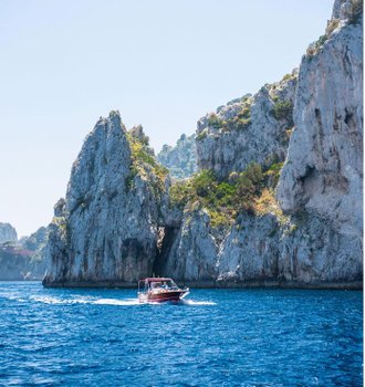 *Durante a alta temporada, a visita à Gruta Azul em Capri pode apresentar desafios devido a longas filas e à capacidade de entrada limitada. Caso a visita não seja possível ou as condições climáticas não permitam, nossos guias locais sugerirão atrações alternativas para garantir uma experiência agradável e memorável (por exemplo, os Faraglioni).